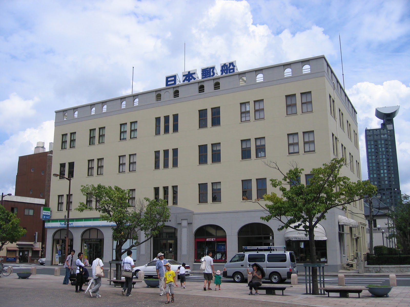 そして駅を降りれば、正面に旧日本郵船門司支店の社屋があります。すっきりとした近代建築のようにも見えますが、アーチ上の装飾が施されているアールデコ建築になっています。因みに1階にはコンビニが入店していて今でも活用されています。
